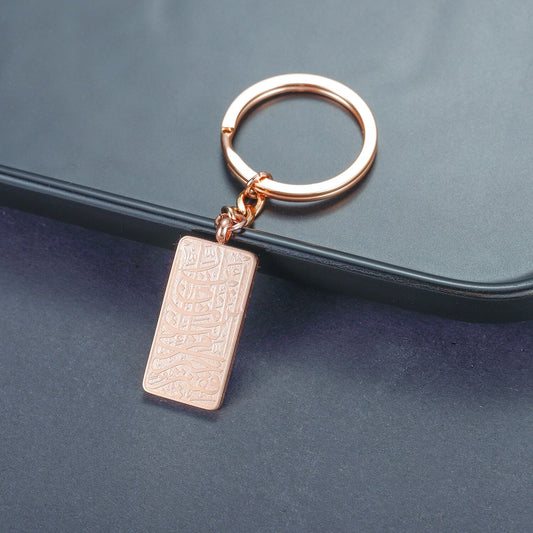 Four Qul-Surahs Qufi Calligraphy Keychain (Engravable)
