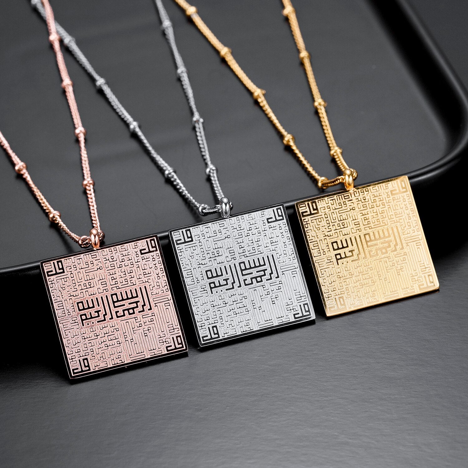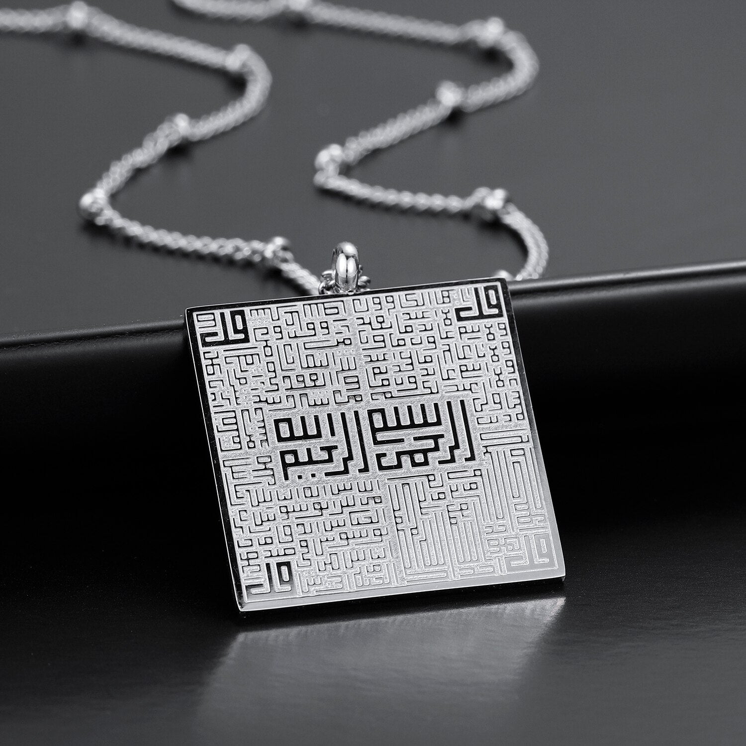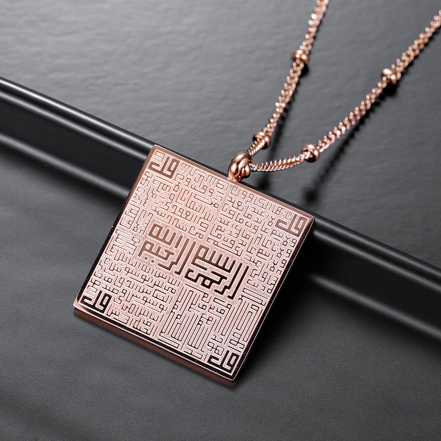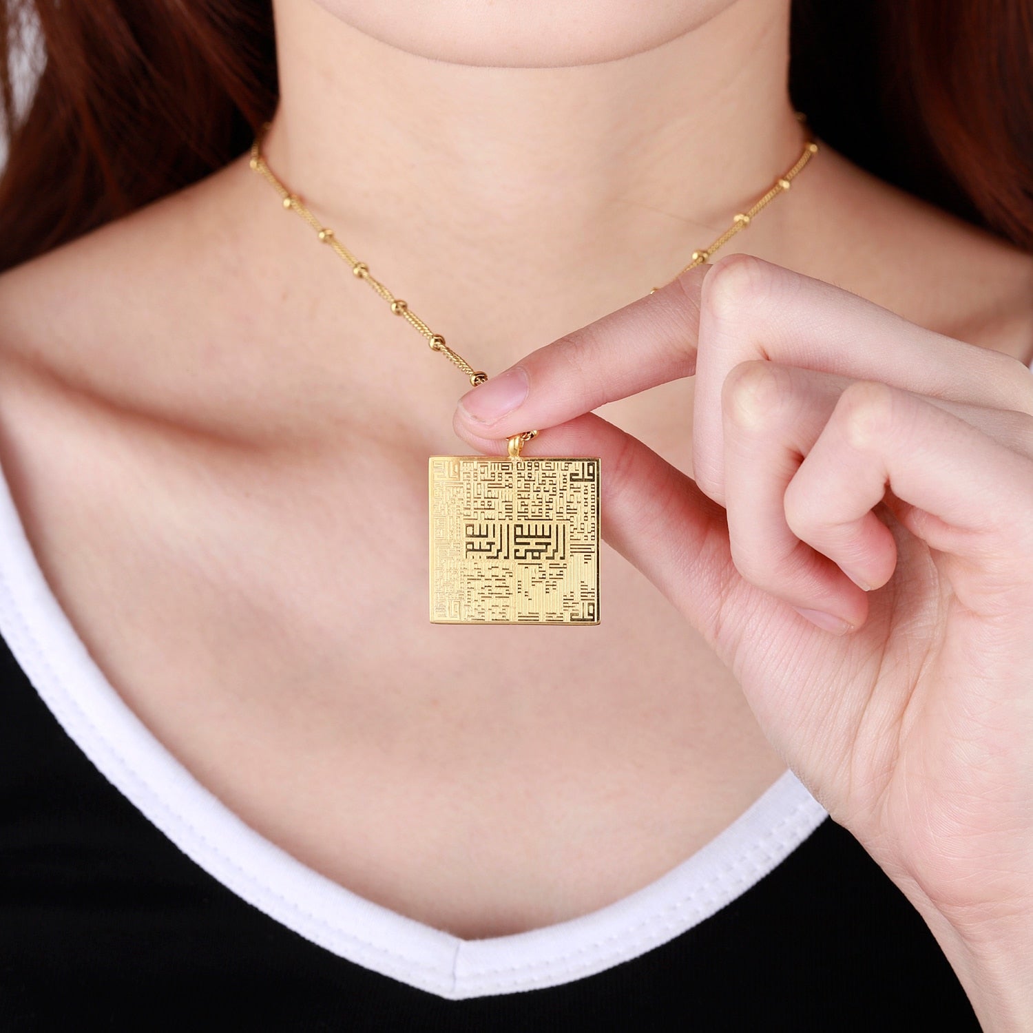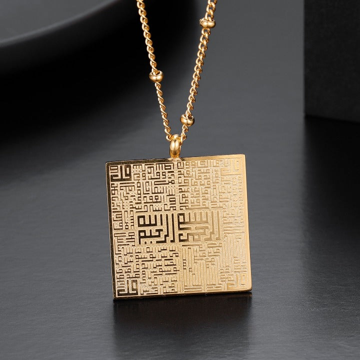 Four Qul Surahs Qufi Calligraphy Necklace (Engravable)